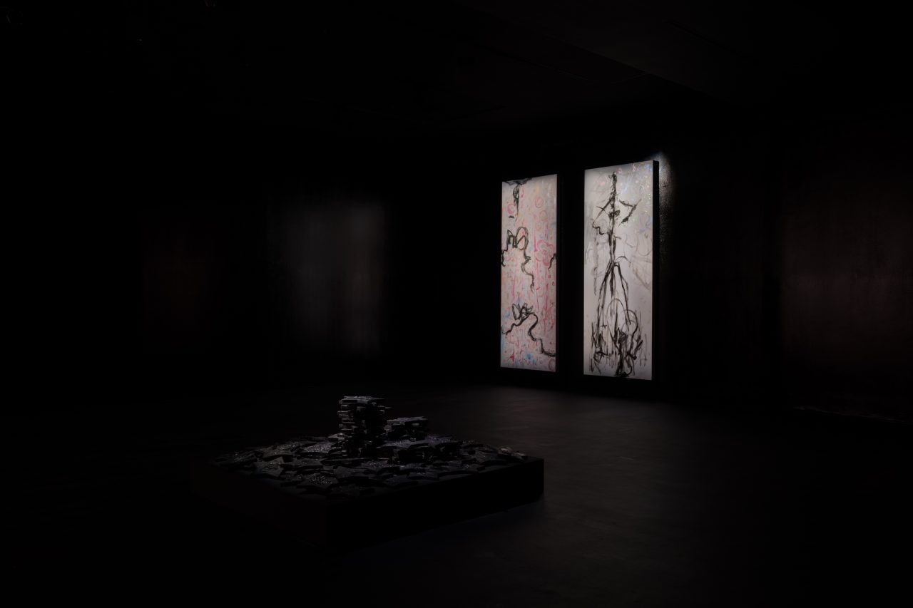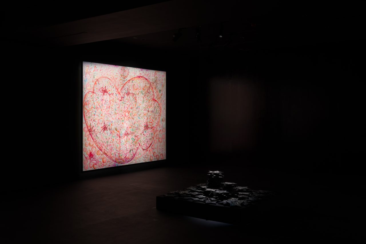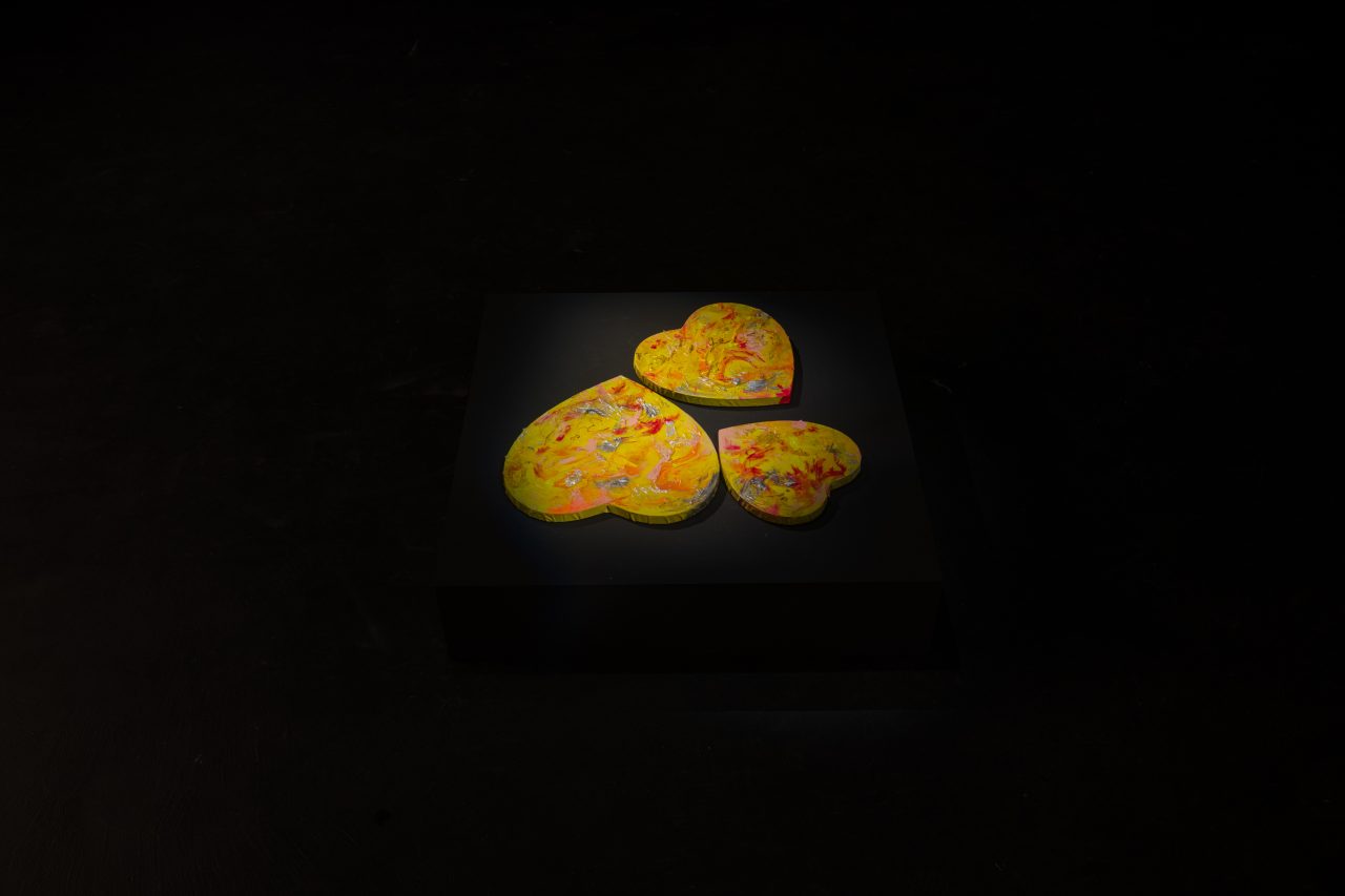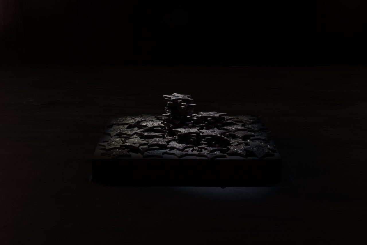 科特爾的星星以折扣店常見的畫布形態顯現,這些材料原本只屬於兒童美術課或養老院。堆疊起來,它們構成了某類抽象畫面,宛如深淵般的風景或已消逝的奇點墓地。它們微小的形態怕快要被畫廊的地面吞噬,消散或消失,在壓倒性的黑色虛無中失去其存在與個性。乍看之下,《iNsEpErAbLe II》似乎以一種完全悲觀的方式暗示著主體的消亡,讓人聯想到法蘭克福學派成員們所沉迷的表達與個性華麗空洞的衰敗。儘管如此,這些形狀仍然蘊含著一種內在的光芒,一種脆弱的存在,拒絕有毒理想主義中過度堅決和扭曲的殘餘物。儘管,或正因為其墮落的處境,聖靈依然保持著其叛逆的光芒。